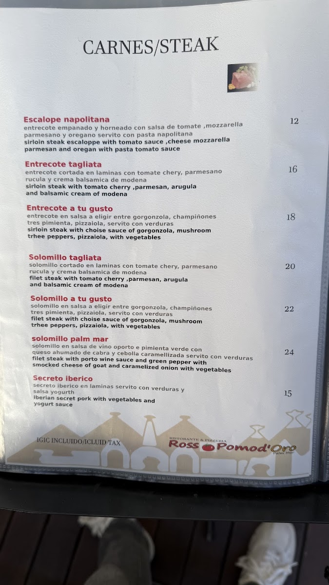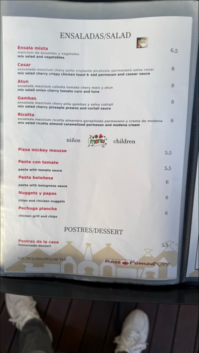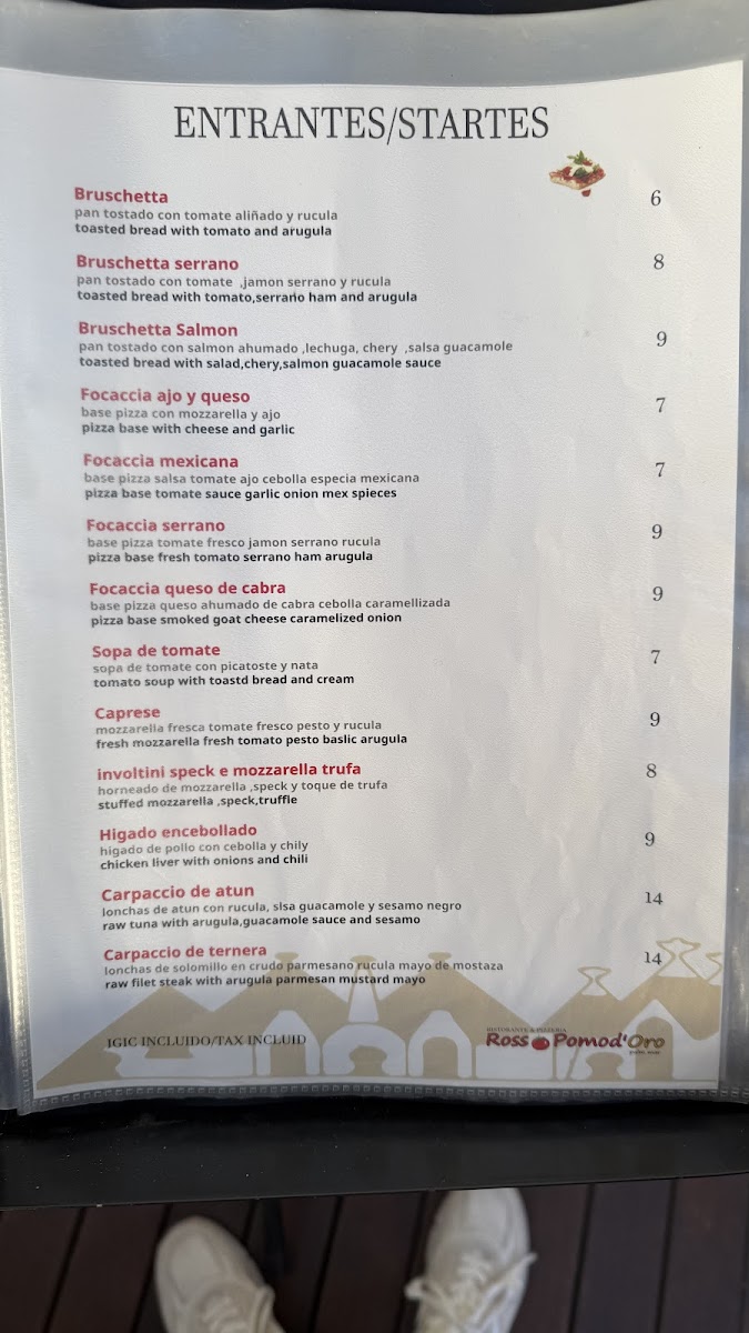 The menu at Rosso Pomod'oro 'el Palm Mar' is a wonderful blend of traditional Italian comfort food and creative twists, offering something for every taste. Whether you’re in the mood for a hearty pizza, fresh pasta, or a refreshing sorbet, you’ll find plenty to satisfy your cravings.